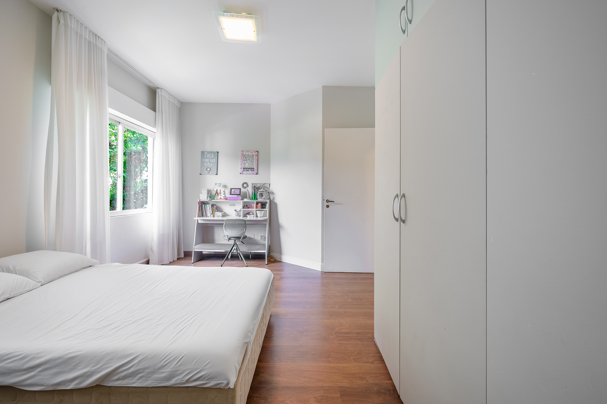 203 m² privativos, andar alto, 1 suíte mais dois quartos e ainda um quarto de apoio. Aqui, os números só apresentam, quem conta a história é o cenário. O verde assume o protagonismo, aparece em cada janela, invade os ambientes e cria uma sensação rara de privacidade total. Some a isso uma reforma minuciosa, daquelas que valorizam cada detalhe, e o resultado é um apê que envolve de primeira. Um clássico dos anos oitenta com vida prática e clima de sossego em pleno centro da cidade. É chegar e morar.