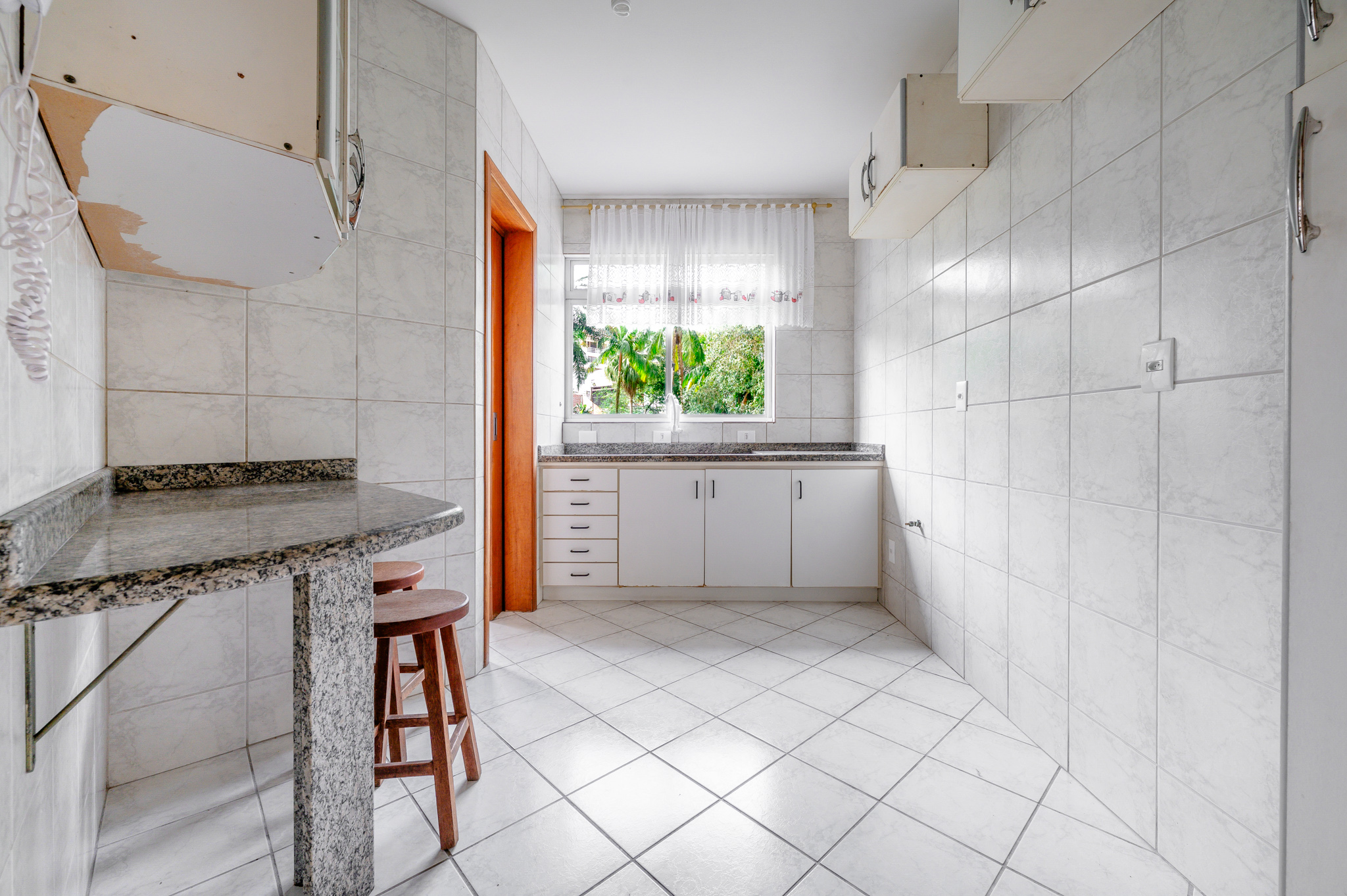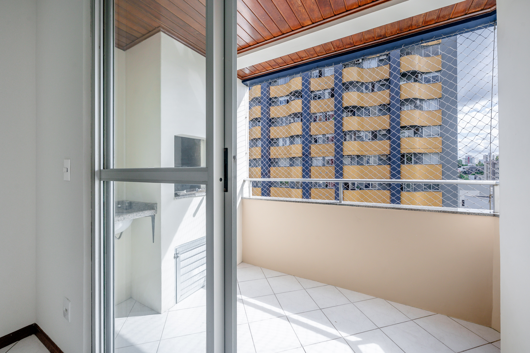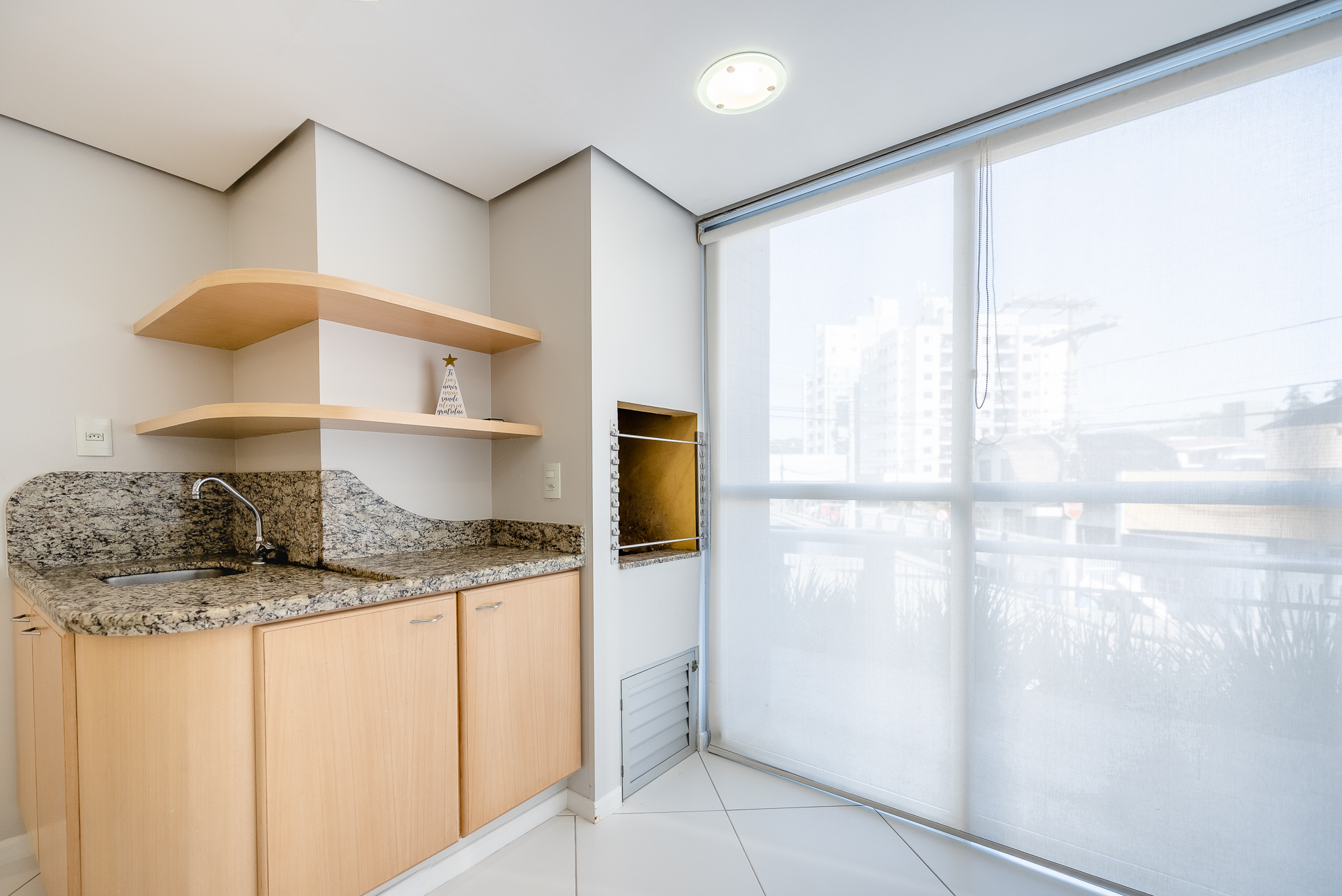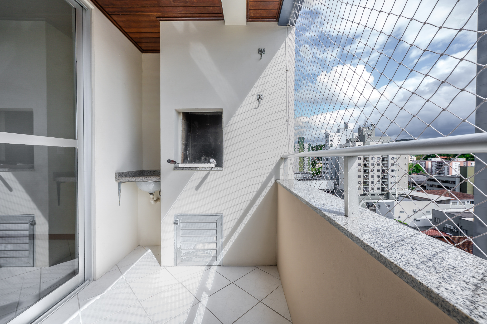 Uma porta de correr separa a área de serviço, bem ventilada e funcional.