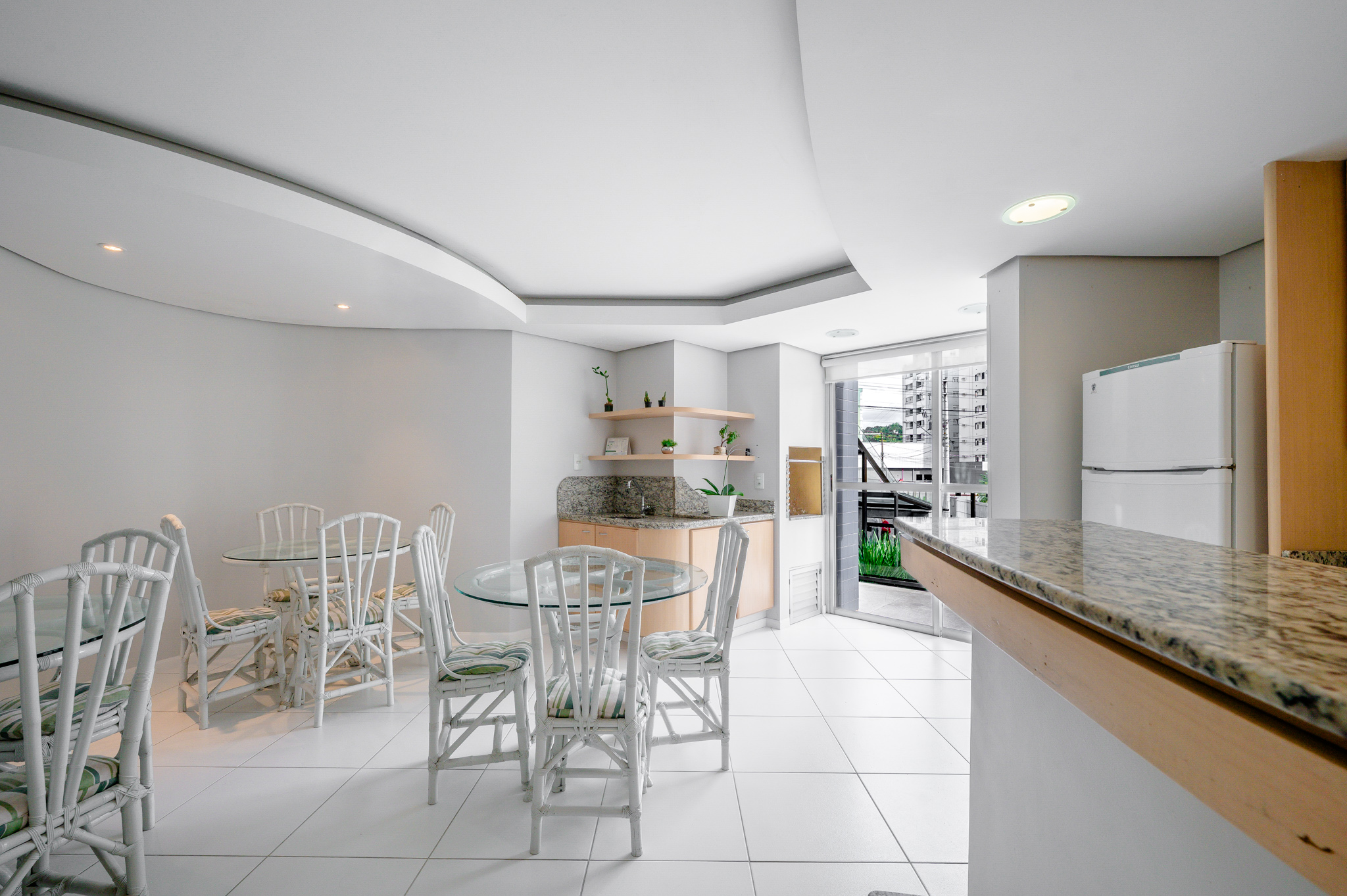 Logo na entrada, o apê já abraça a gente com aquela carinha de lar que espera um novo morador..A ampla sala de estar e jantar tem como destaque a varanda super aconchegante — onde dá pra contemplar o cenário urbano, esticar uma rede ou fazer um churras (sim, tem churrasqueira!). Dali, ainda é puro relax o verde das árvores centenárias que emolduram o fim da rua.