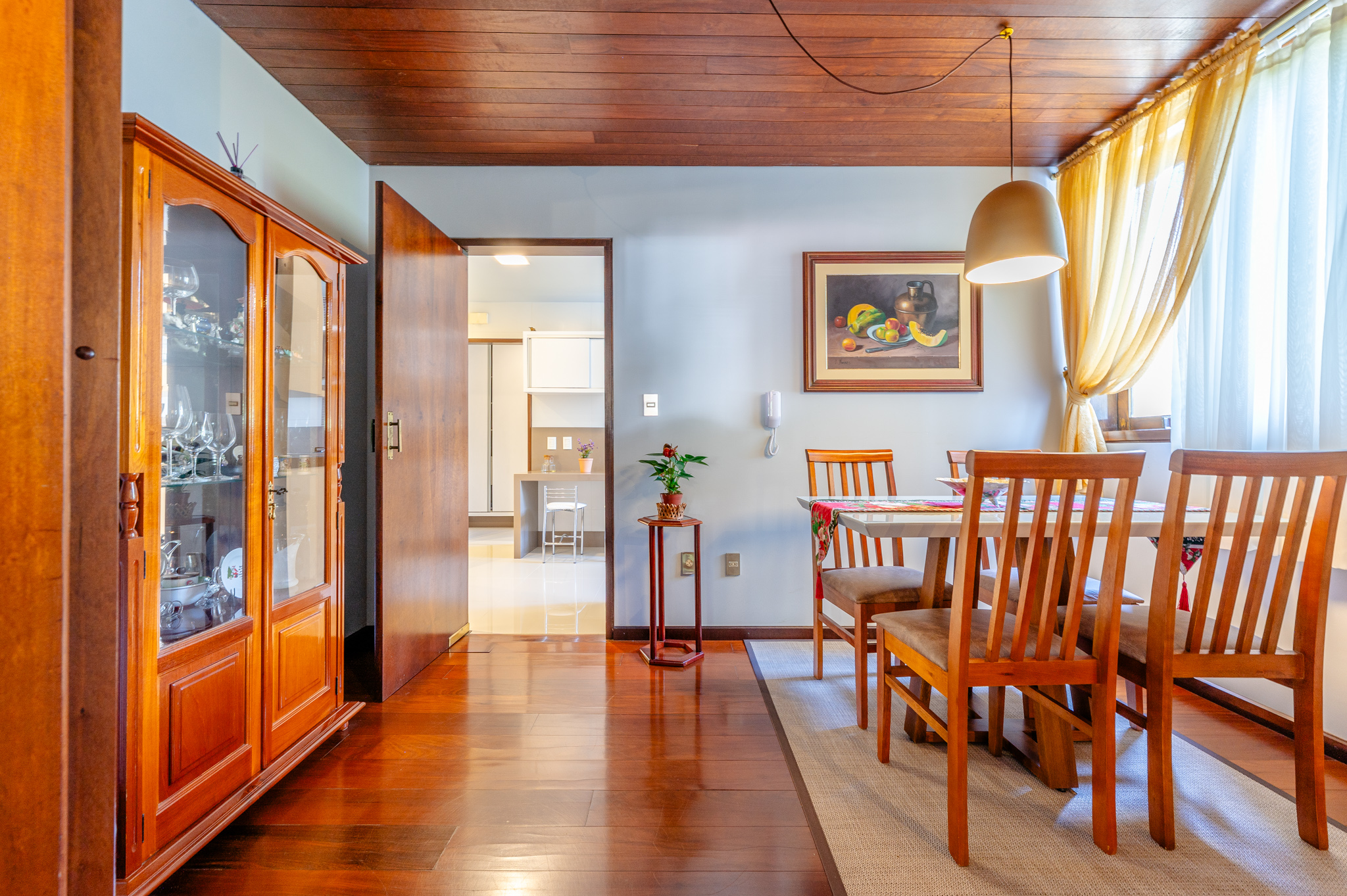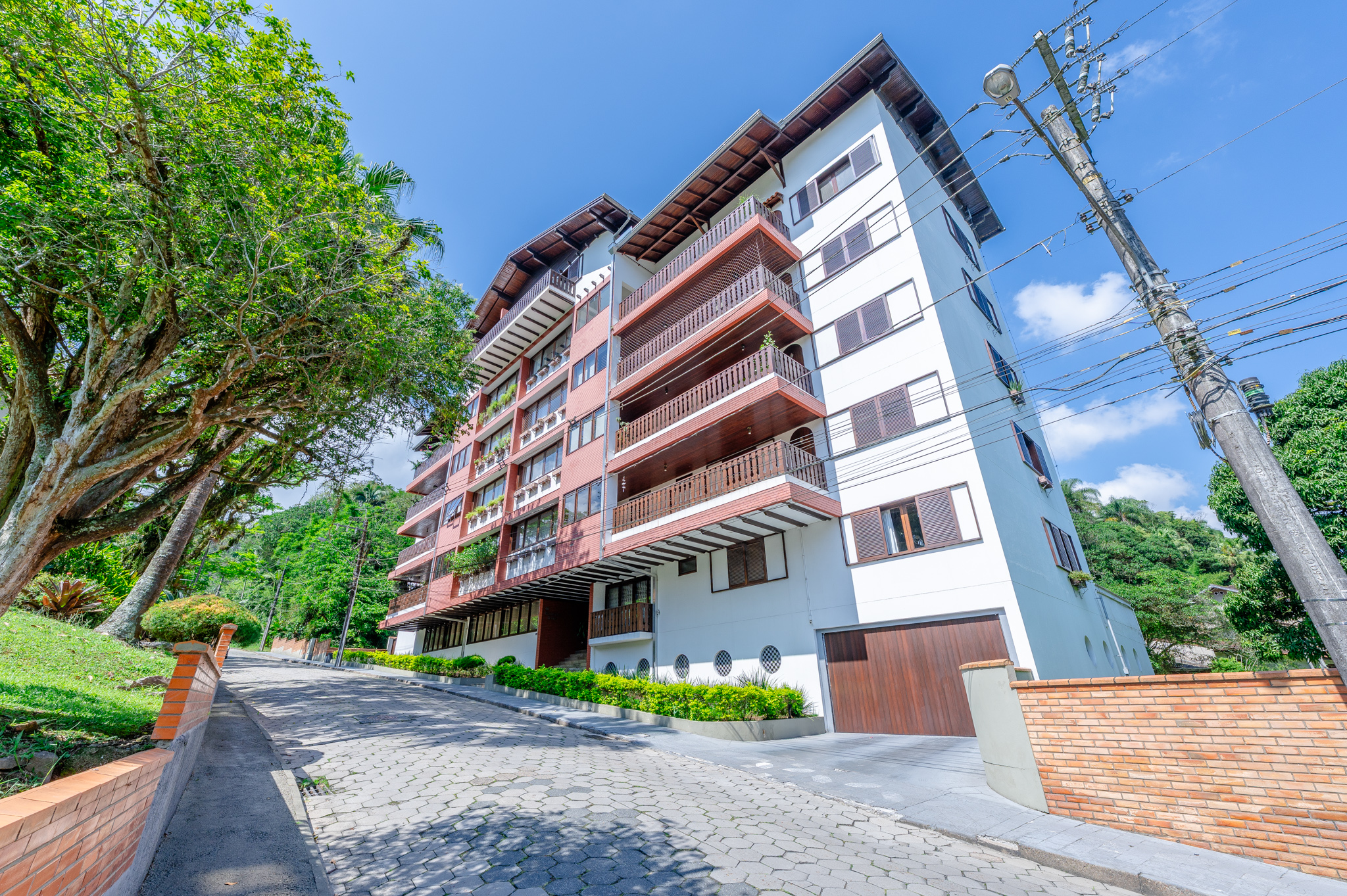 Se você busca espaço, autenticidade e aquela arquitetura vintage que não se faz mais, este achado é pra você. Encontramos essa raridade no Residencial Herwig — clássico prédio alemão único em Blumenau, com apenas dois apartamentos por andar e 283 m² privativos. O apê fica totalmente mobiliado (saem apenas itens pessoais) e oferece 3 suítes — uma delas americana — além de duas generosas varandas que integram sala e quartos.